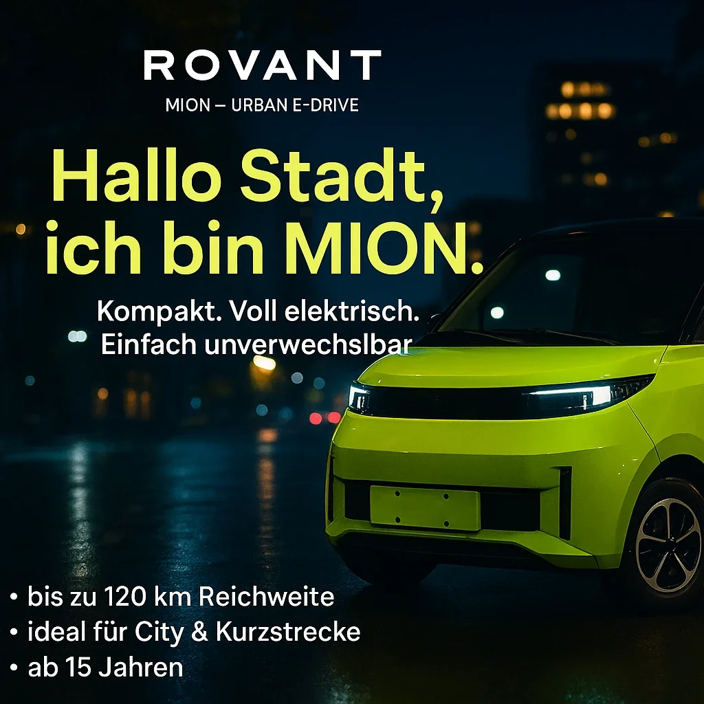 Der Rovant City Cruiser MION ist ein kompaktes, vollelektrisches Leichtfahrzeug für den urbanen Alltag.